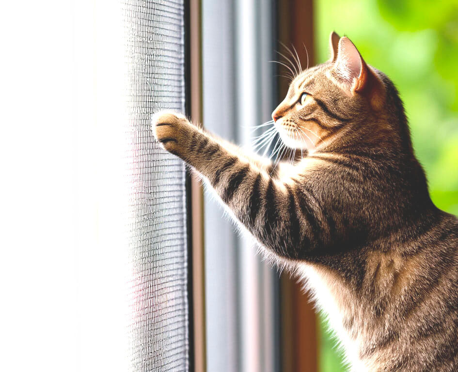 «АнтиКошка» не боится зубов, когтей и веса животного. Питомцы могут кусать его, тянуть или грызть, но порвать москитную сетку не получится, также она обережет вашего питомца от выпадения из окна.