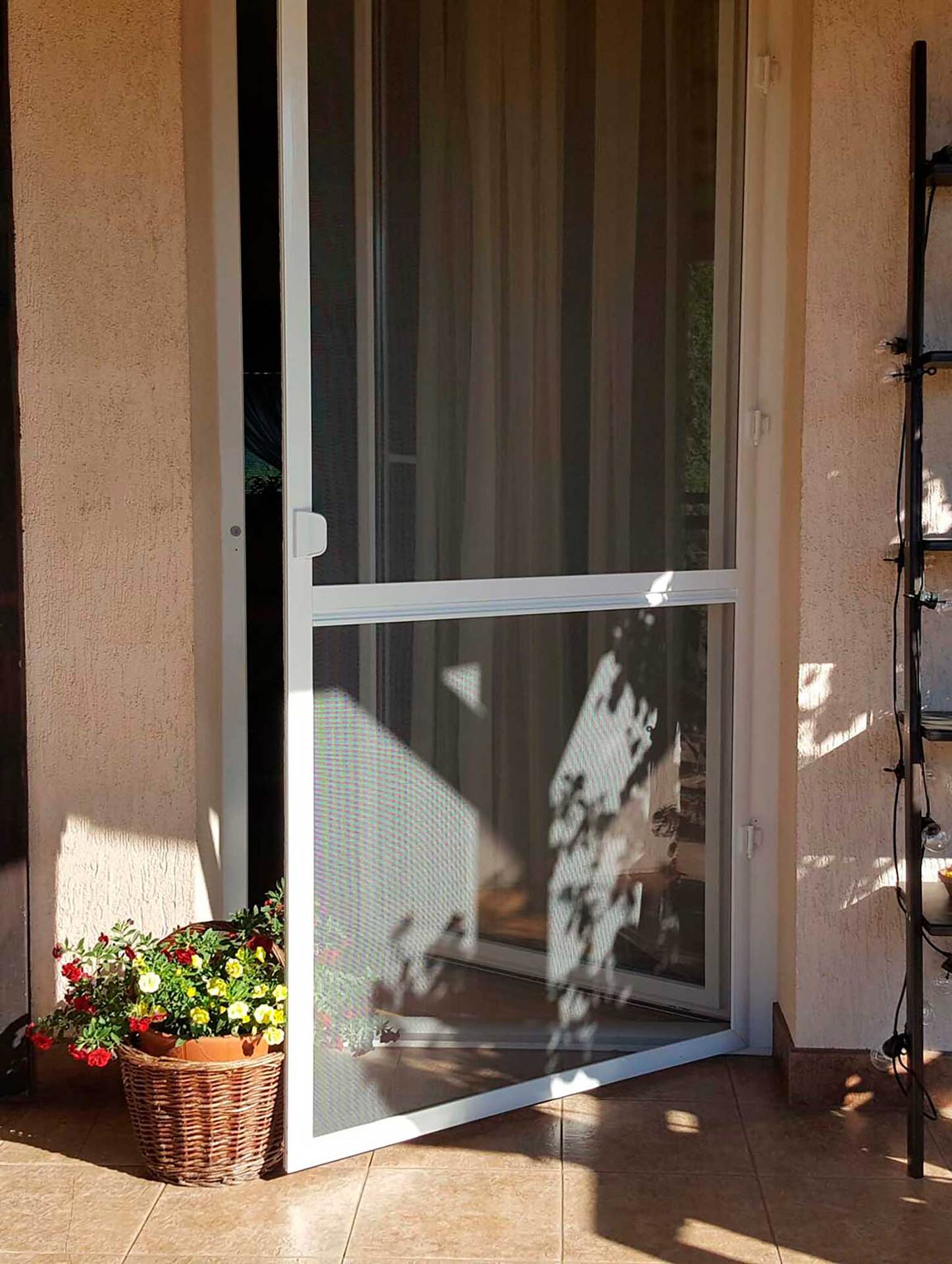 Удобное решение для защиты от насекомых. Сетка свернута в алюминиевом коробе над проёмом и опускается вниз когда это необходимо.